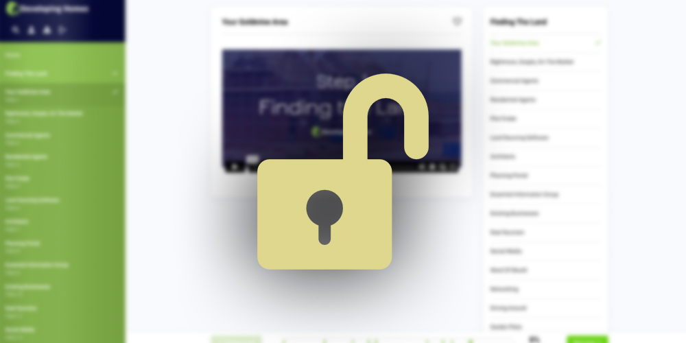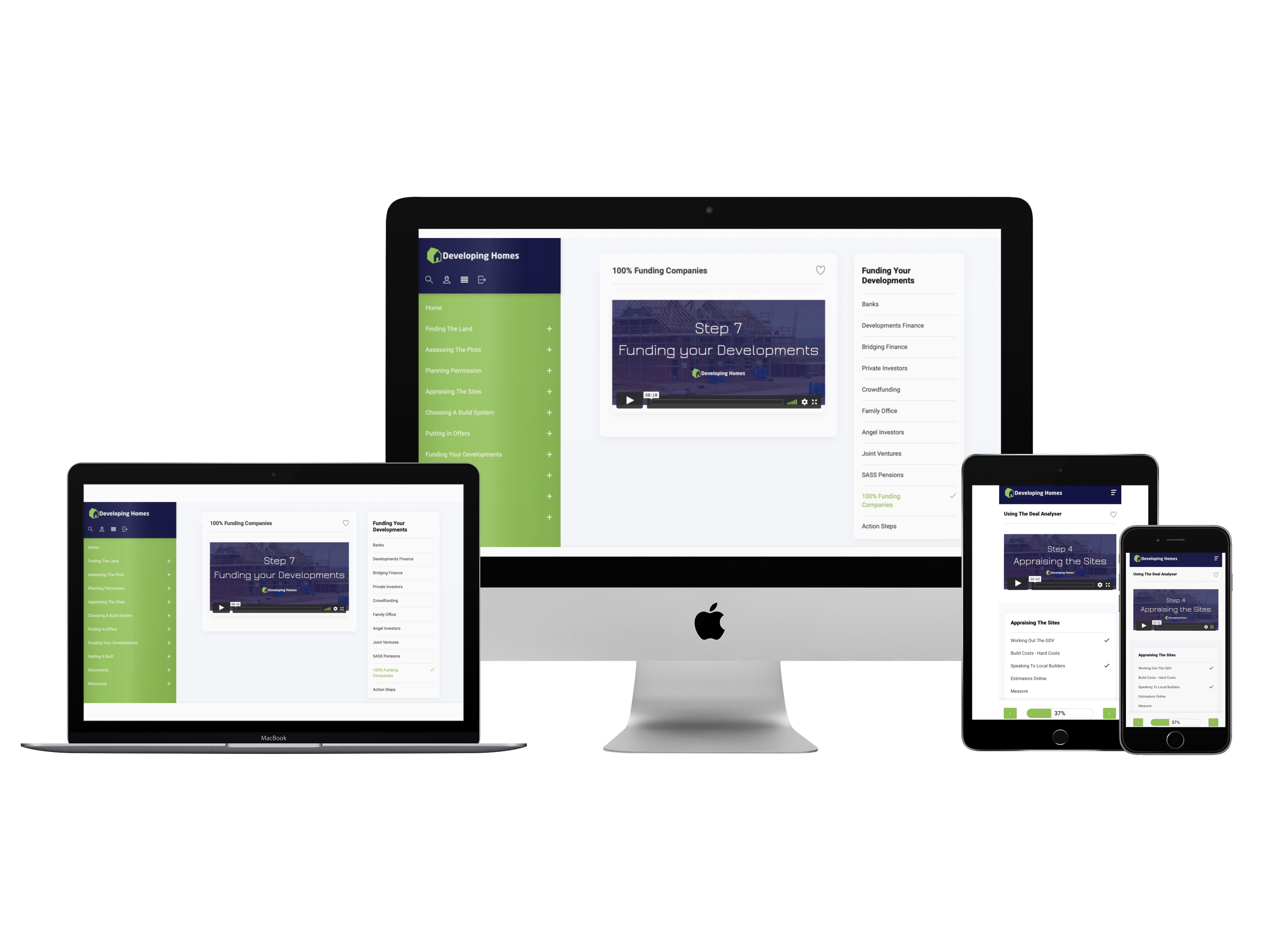 Content is broken down into 8 easy manageable steps, which is broken down into specific bite-sized videos covering all aspects of property development.