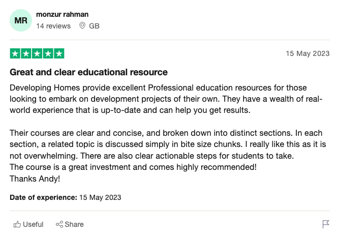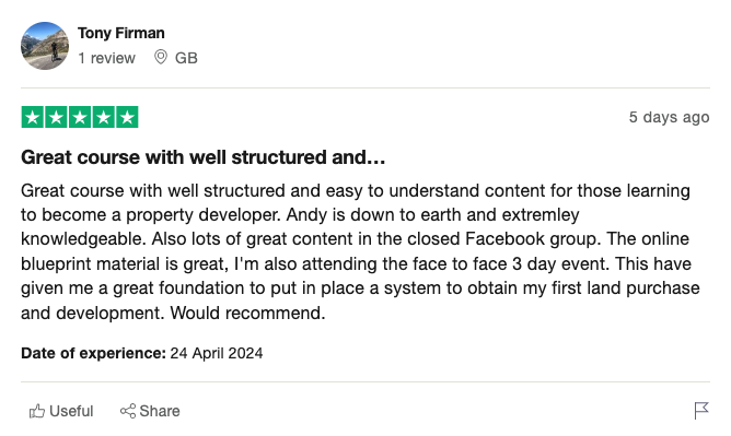 The course is fully presented by Andy Hubbard who has over 30 years of construction knowledge, has built 200+ houses and is a full time property developer and mentor.